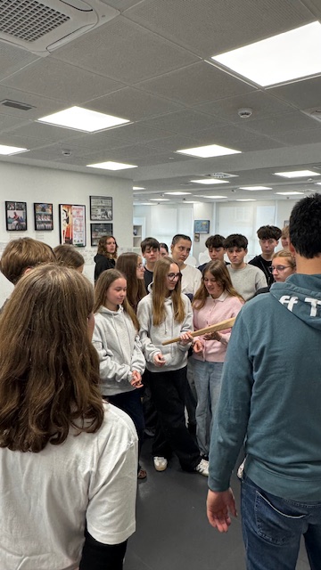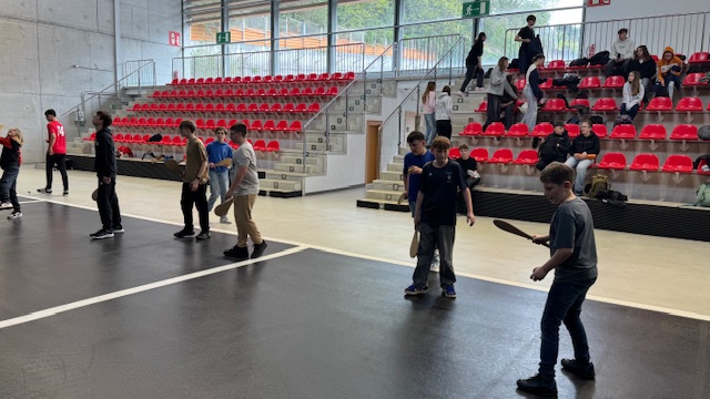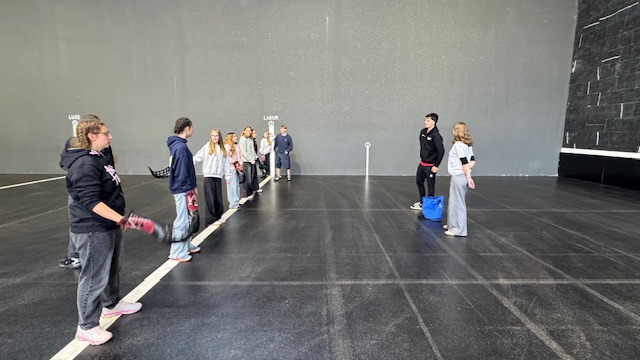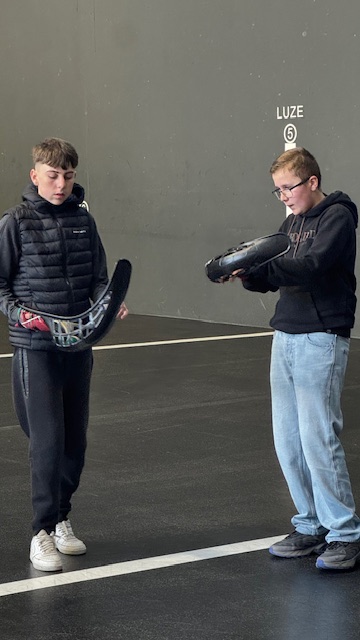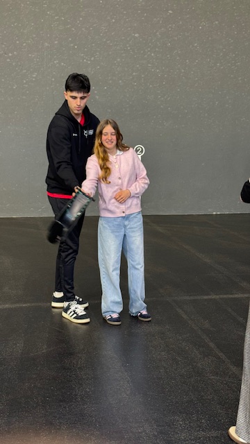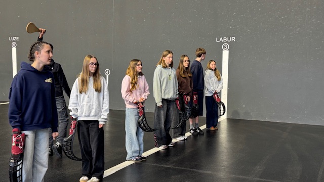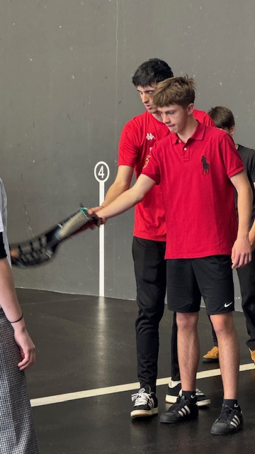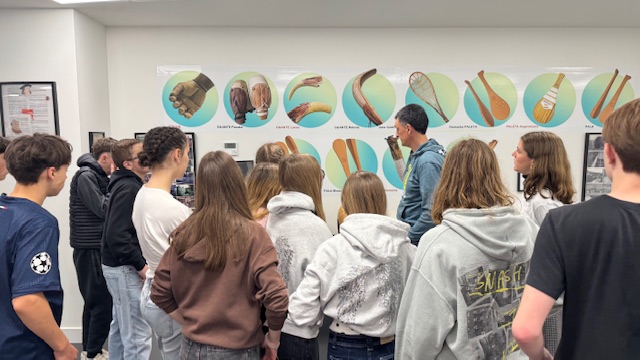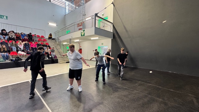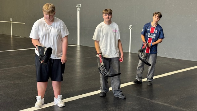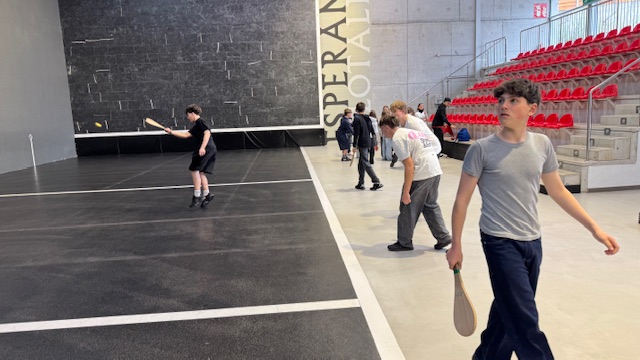 Les élèves ont pu essayer les 3 manières de jouer: avec la main, avec la raquette et avec la Cesta puis une découverte historique.