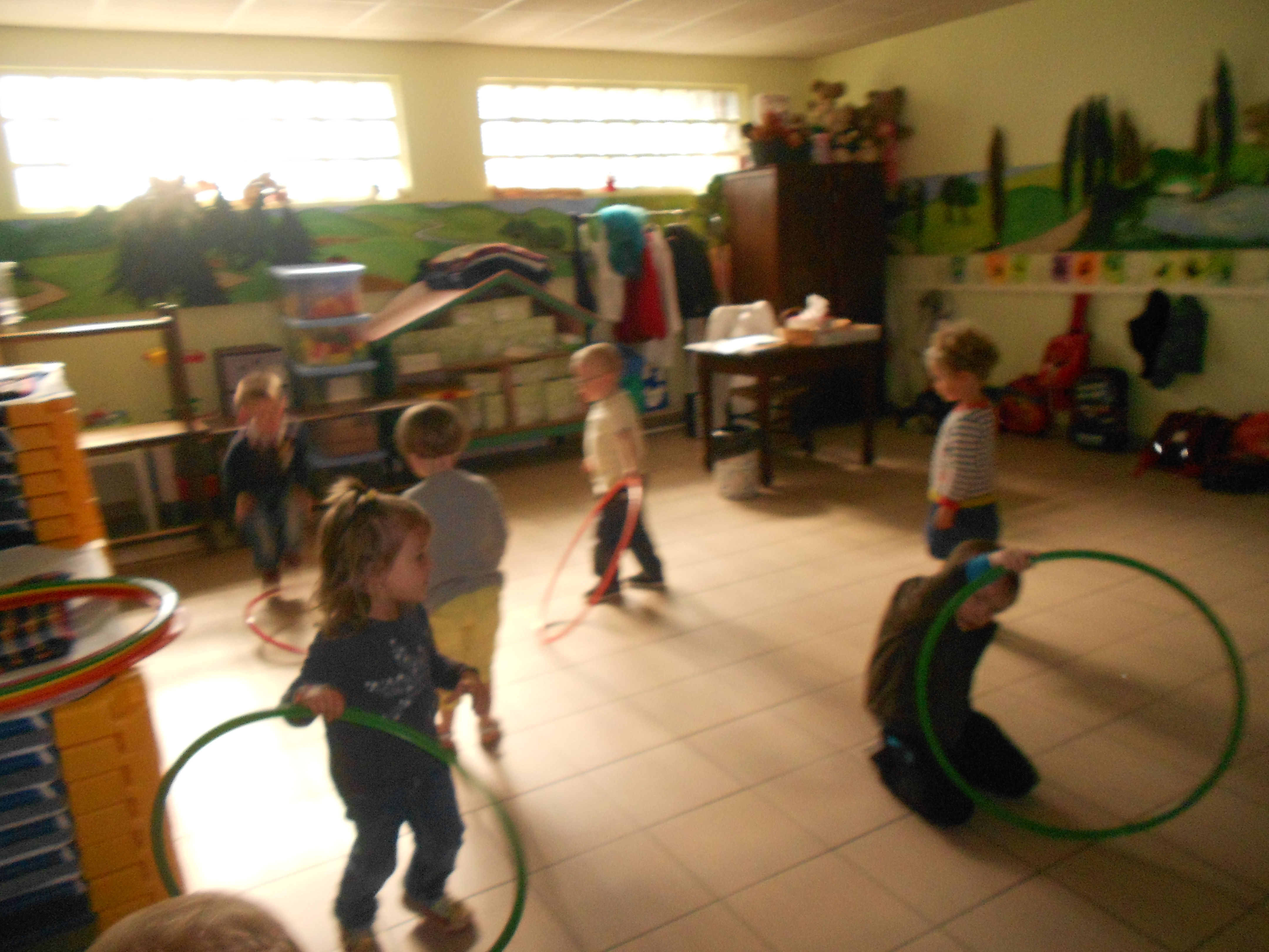 Motricité tps/ps: faire rouler le cerceau vers un autre enfant.