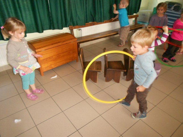 Motricité tps/ps: faire rouler le cerceau vers un autre enfant.