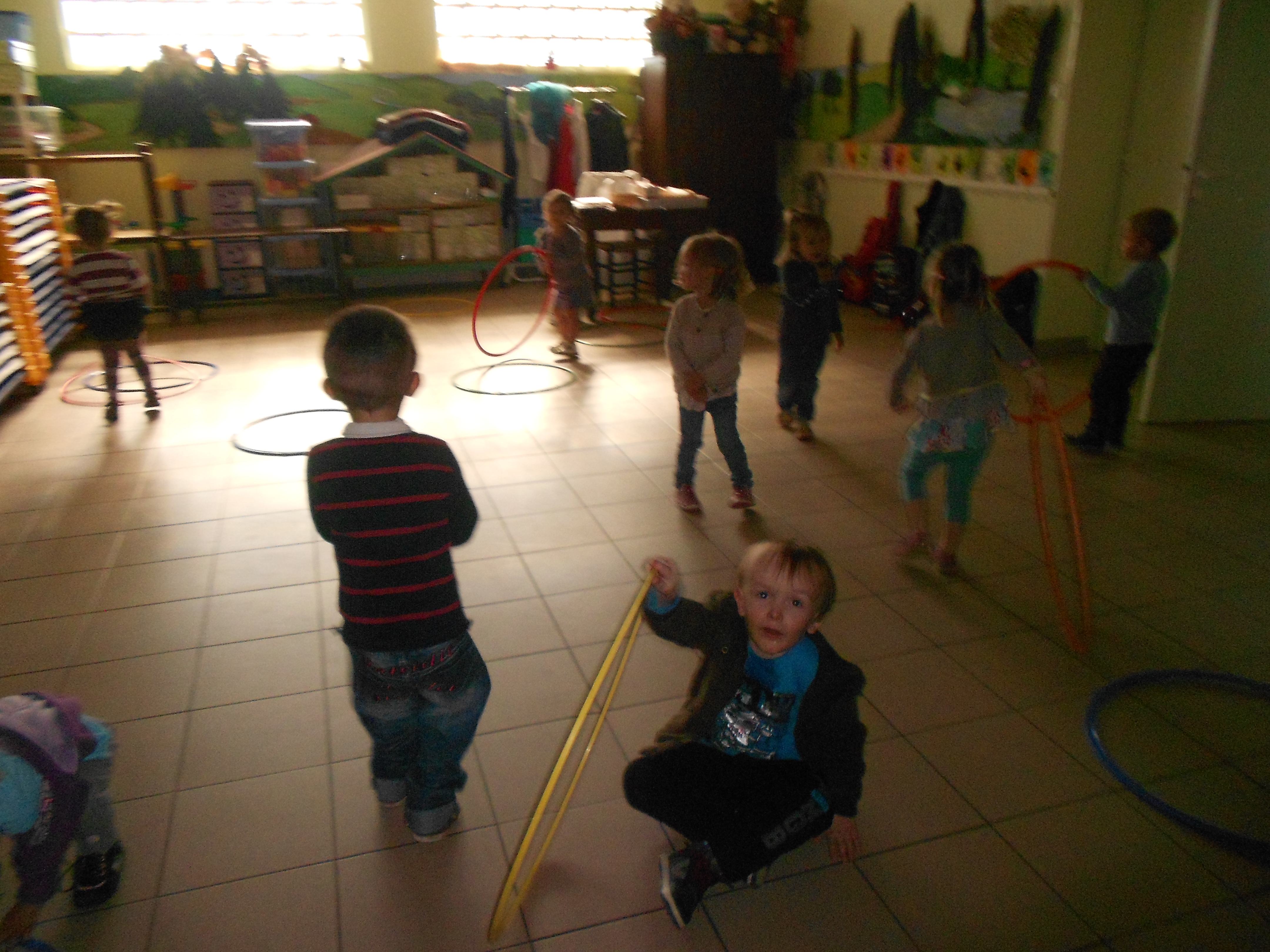 Motricité tps/ps: faire rouler le cerceau vers un autre enfant.