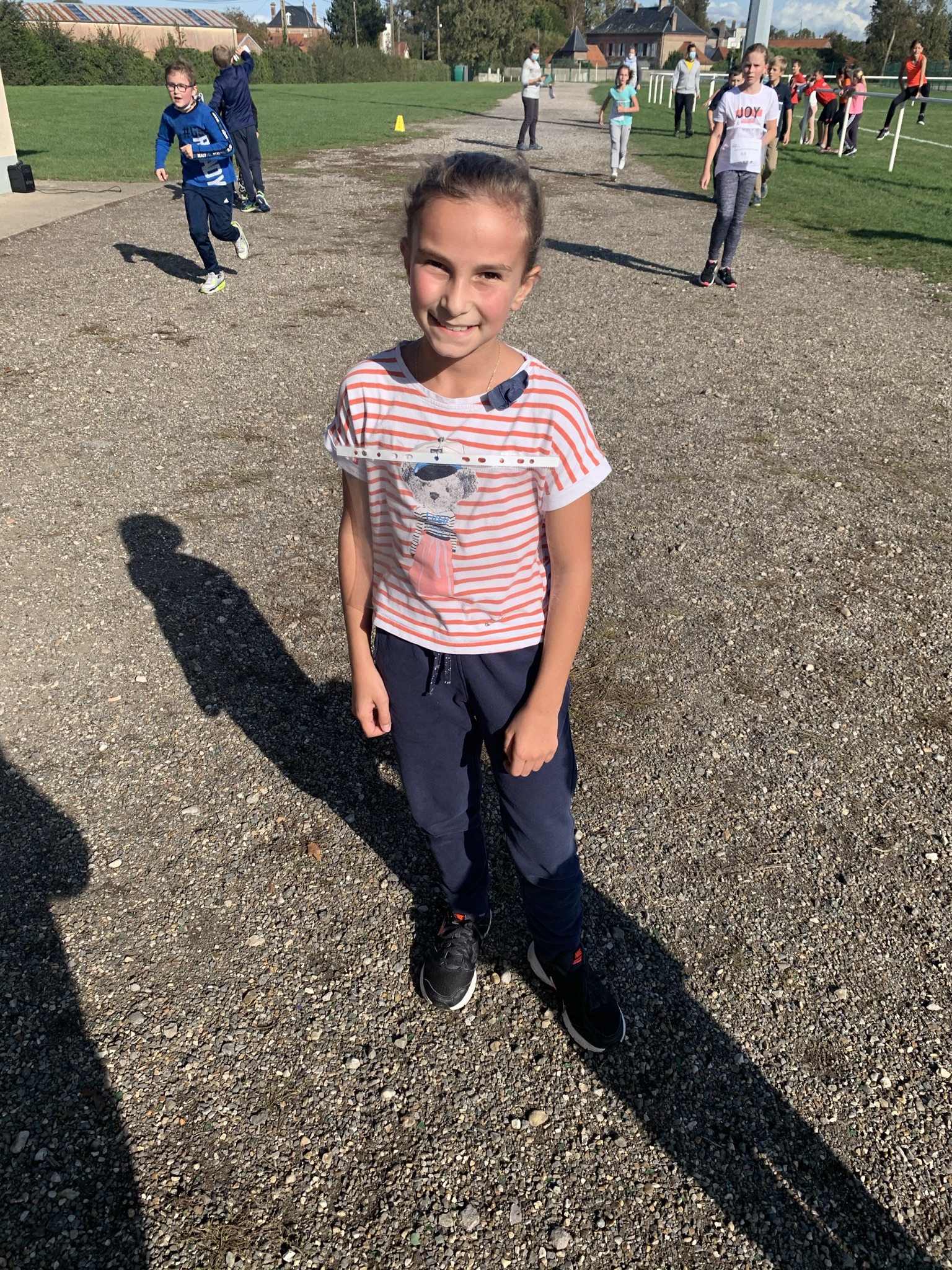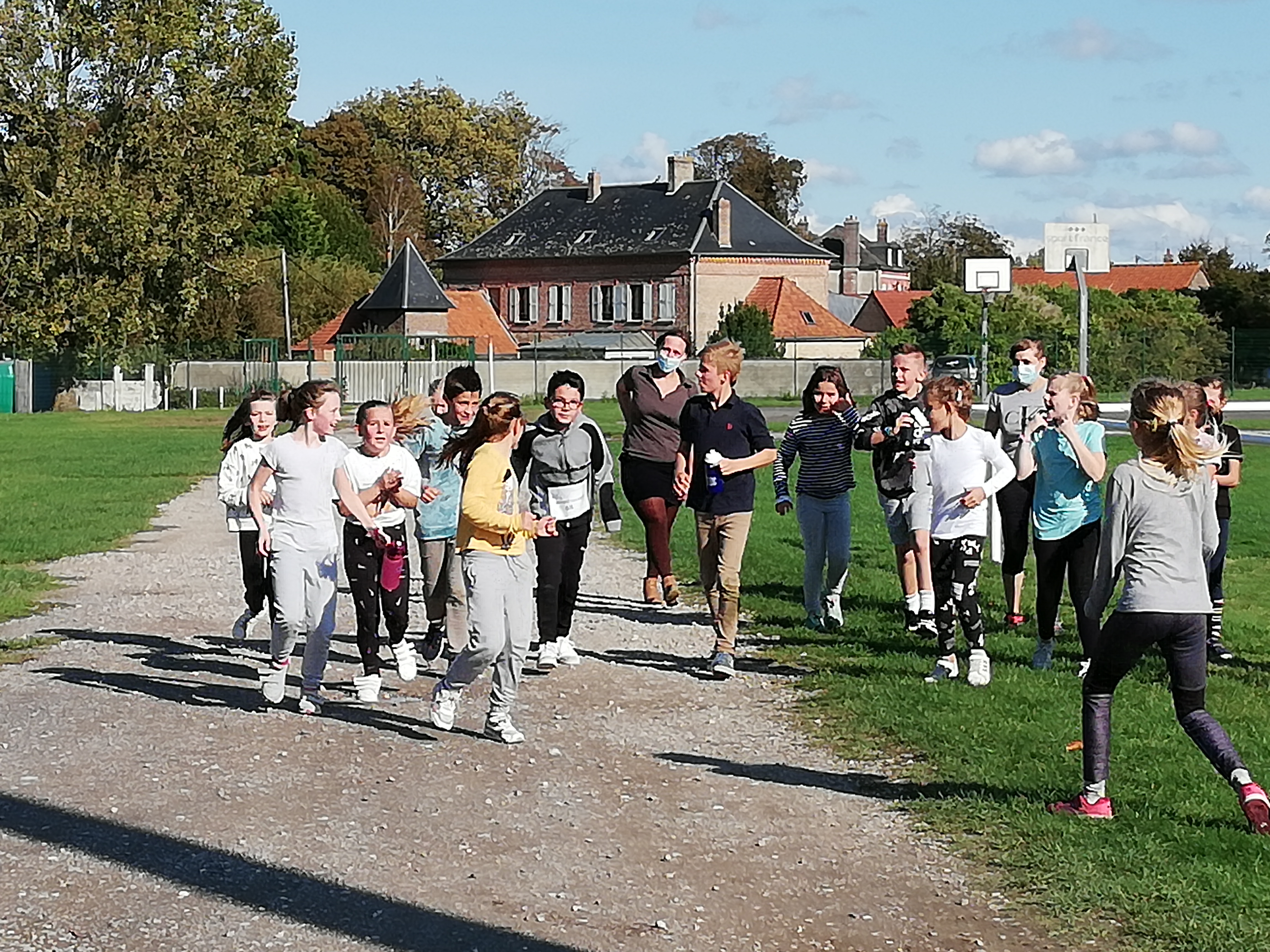 Les élèves de CM1 et CM2 ont parcouru 1 600 m soit 2 grands tours et 1 petit tour.