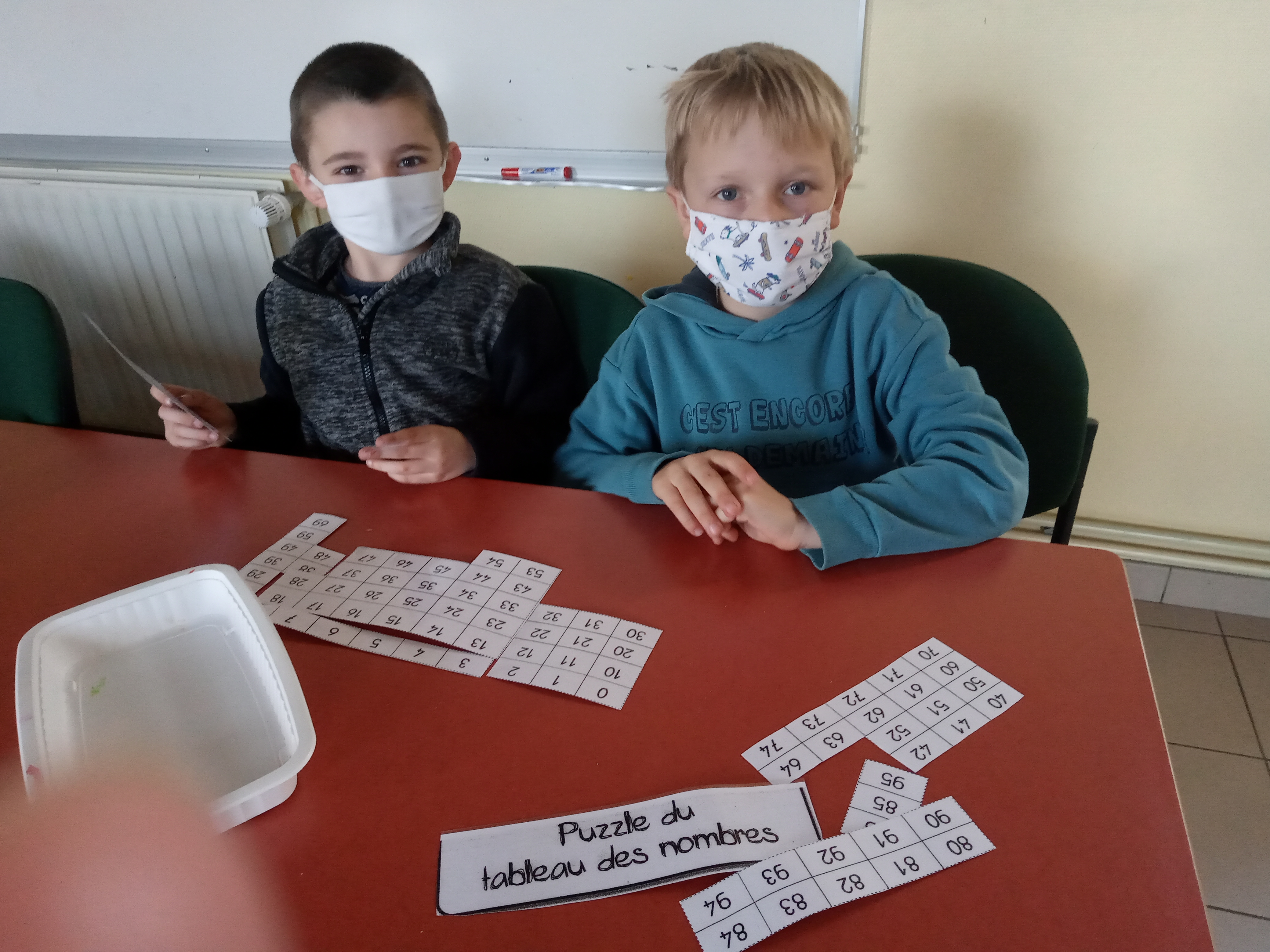 - Défis mathématiques : puzzle du tableau des nombres, calculs (additions à trous) pour faire 100