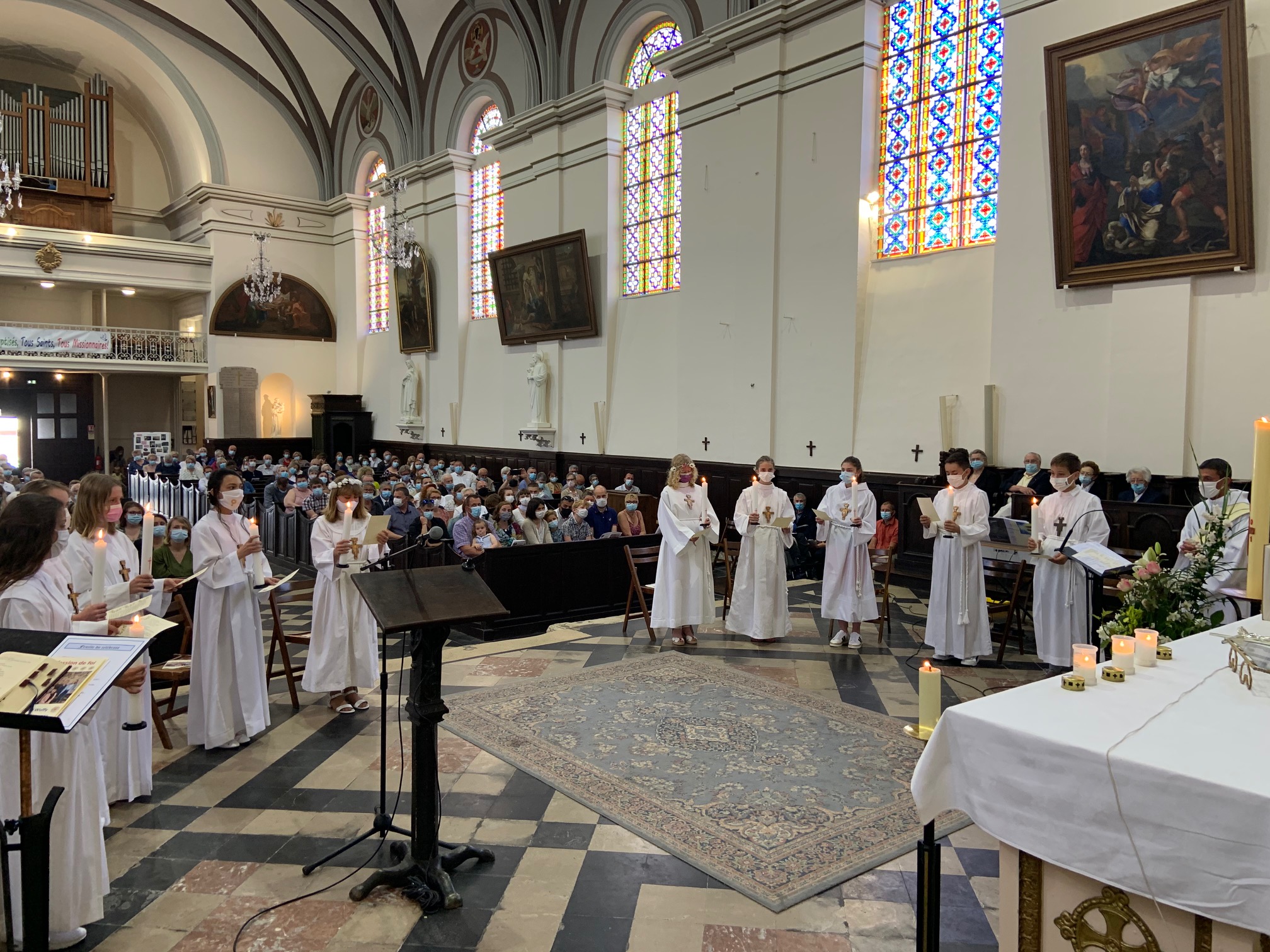 Ce dimanche 13 juin, 11h, en l’église de Rue, 10 jeunes de notre établissement ont professé leur foi en Dieu : Père, Fils et Esprit-Saint. « Le Royaume de Dieu est semblable à une microscopique graine de moutarde qui, lorsqu’elle germe, pousse, grandit, devient un arbre sur lequel les oiseaux peuvent venir se reposer. » La foi peut être minuscule mais, si petite soit-elle, elle est capable de nous faire faire des merveilles. Heureux de croire, mettons nos pas dans les pas du Christ pour bâtir son Royaume : Celui de l’Amour, de la Paix et de la Fraternité.