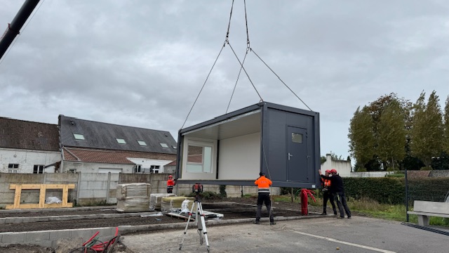 Ce mercredi 9 octobre 2024, le bâtiment modulaire du collège a été livré. Une grue impressionnante était positionnée dans la rue de la porte de Becray et a déposé un par un les 8 modules sur ses fondations. Les élèves avec leurs enseignants ont pu assister à l’opération. 2 années de travail qui se concrétisent. Il faudra encore un peu de patience avant de pouvoir utiliser les salles.