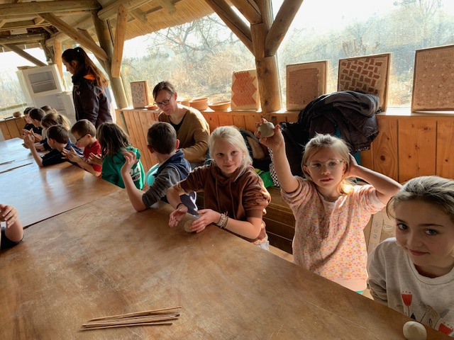 Nous avons commencé notre journée par la période du paléolithique par une visite suivie d’un atelier d’art pariétal en groupe. L’après-midi nous avons poursuivi par le néolithique avec un atelier de sculpture d’animaux que chaque enfant a ramené à la maison. Une journée très appréciée par tous.