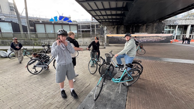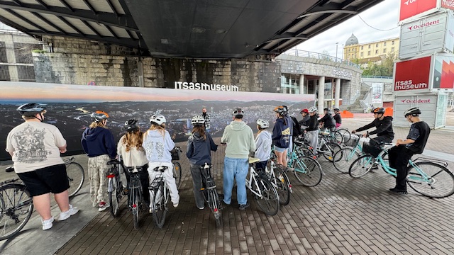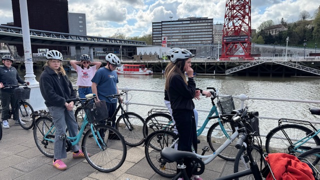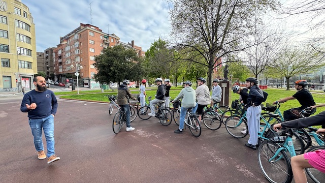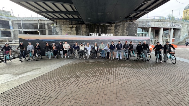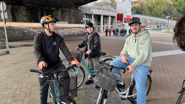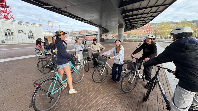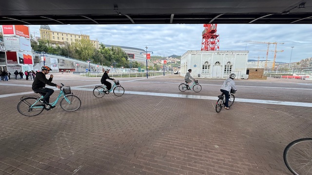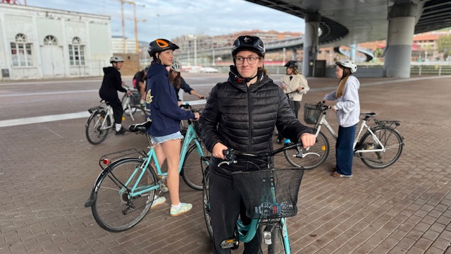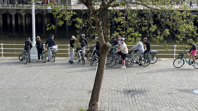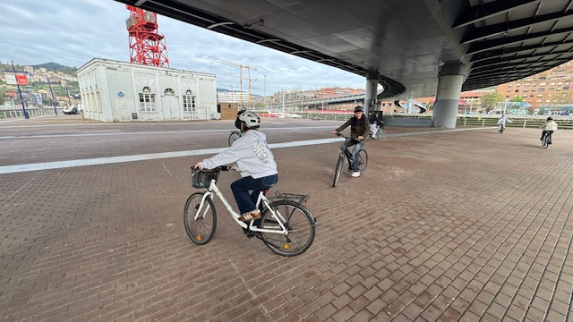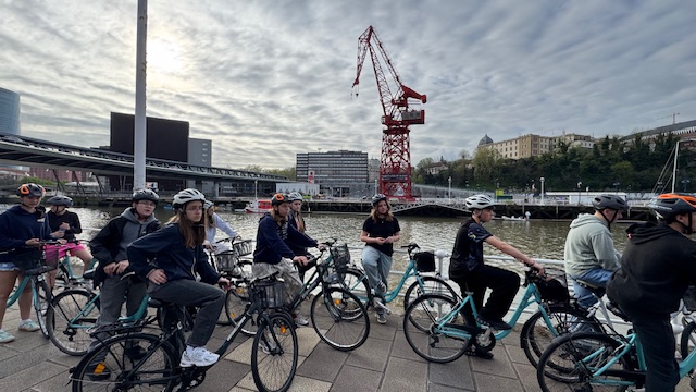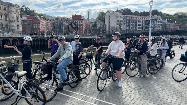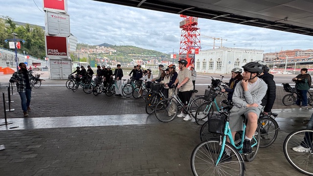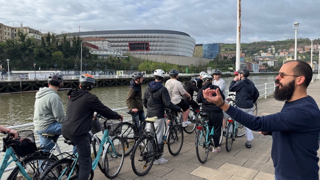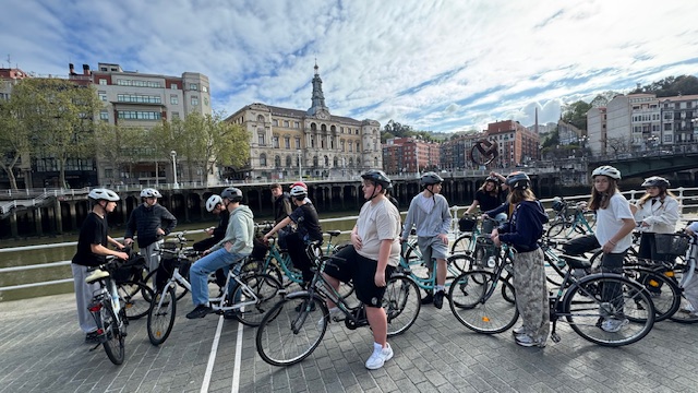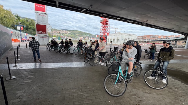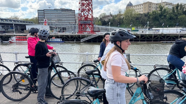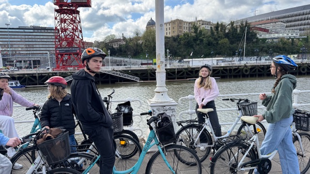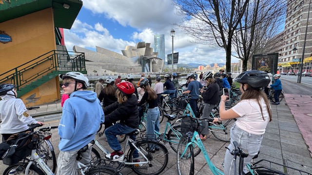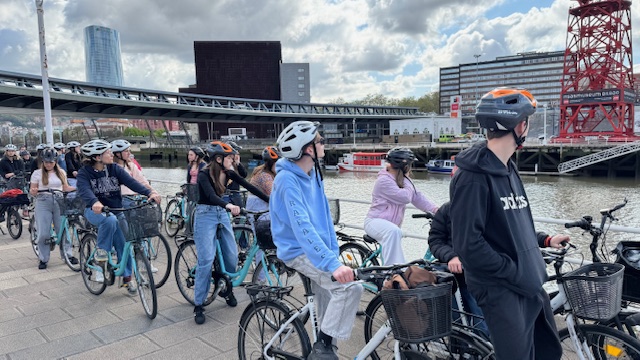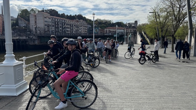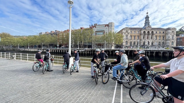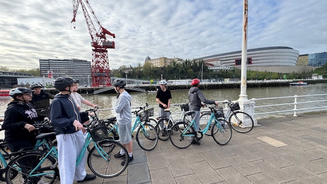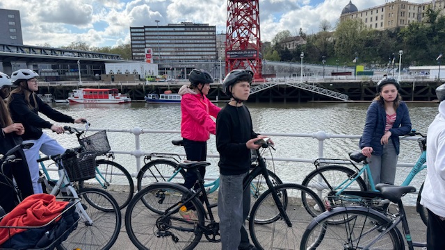 Ce matin , nous avons fait une visite guidée de la ville en vélo. Sous un beau soleil, nous avons admirer les bâtiments principaux de la ville: L’université, l’hôtel de ville, le musée Gugenheim, le musée de la Marine, le stade de l’atletic de Bilbao.