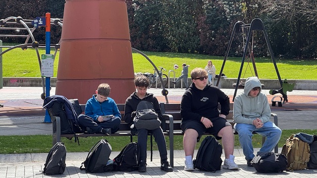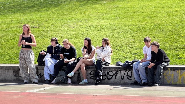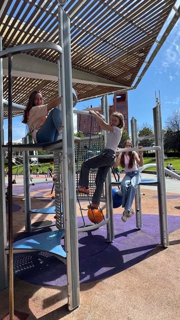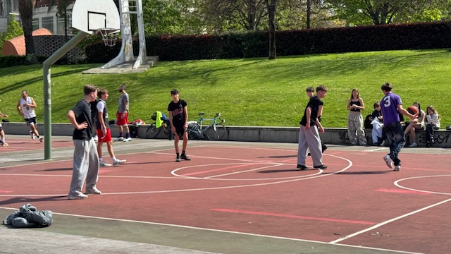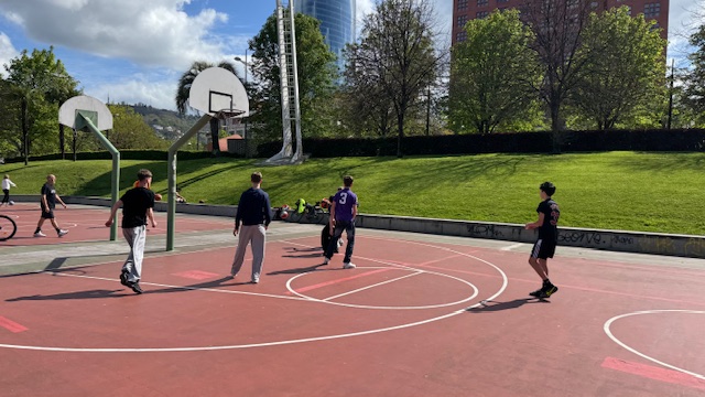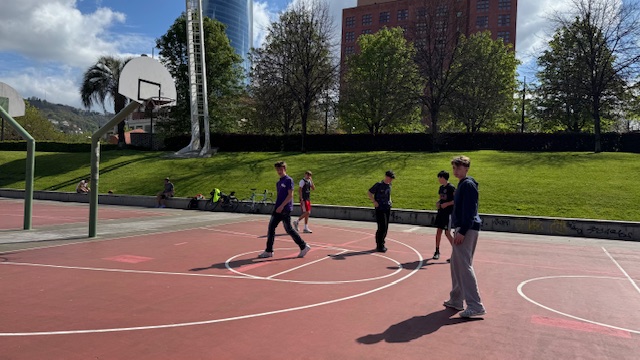 Pendant la pause déjeuner dans un parc, certains élèves ont sympathisé avec des espagnols et ont fait une partie de Basket ensemble. Un bon moment partagé.